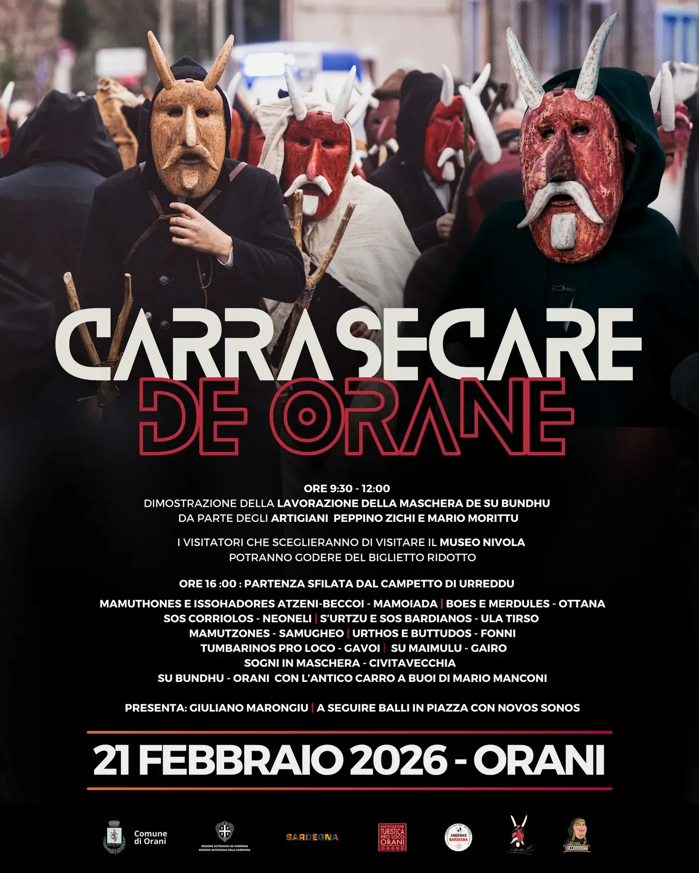 Orani si prepara a vivere uno degli appuntamenti più attesi dell’anno: il Carrasecare de Orane, in programma sabato 21 febbraio 2026. Un evento che non è soltanto una sfilata di maschere, ma un racconto collettivo che attraversa storia, artigianato e tradizione, nel cuore della Barbagia.