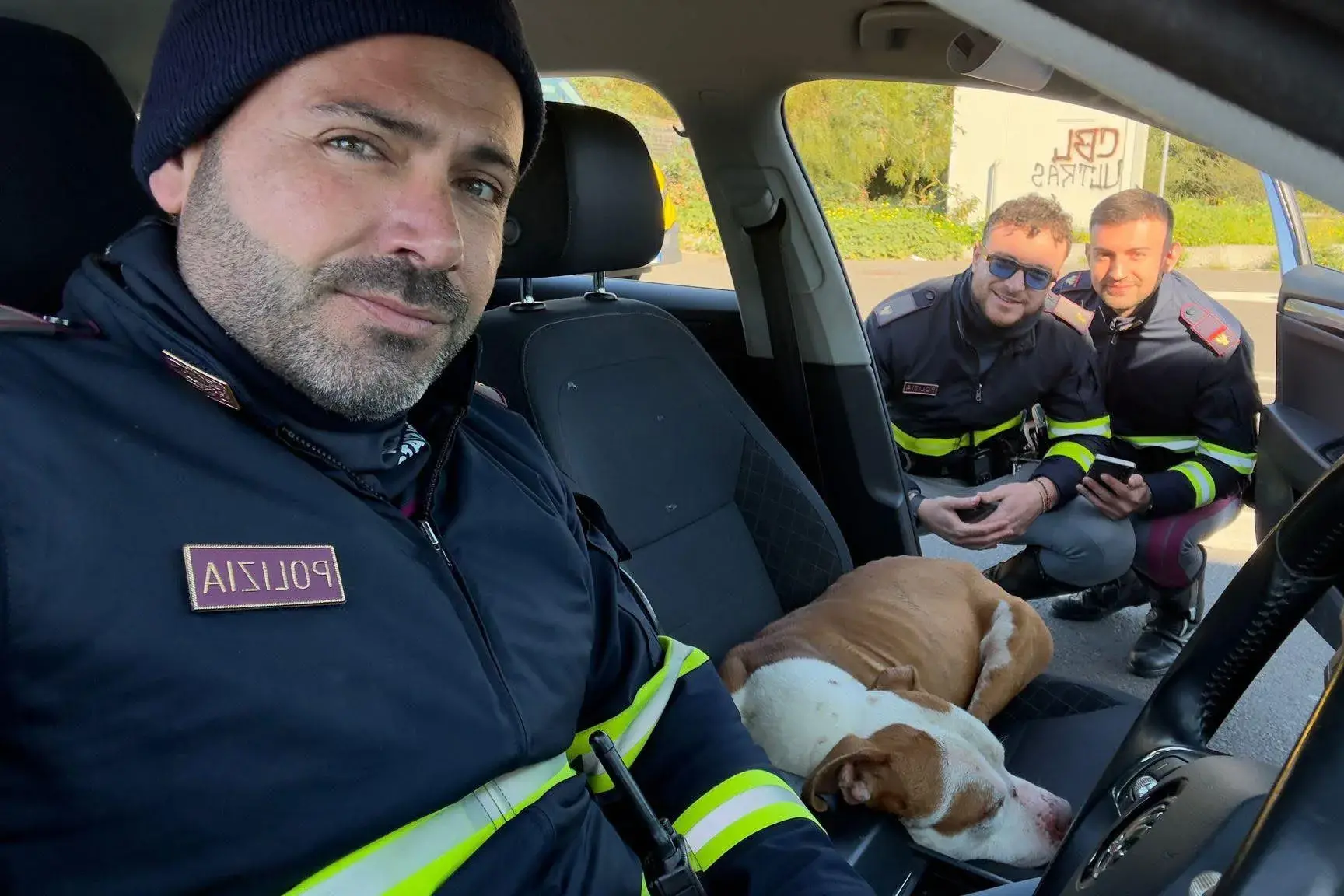 Nell'area girovagava un cane pitbull che si era smarrito, creando potenziale pericolo per sé e per gli automobilisti. Alla vista degli agenti, l’animale si è avvicinato di sua spontanea volontà alla pattuglia e, sorprendentemente, si è introdotto spontaneamente nell’abitacolo dell’auto, mostrando fin da subito di non voler più uscirne.