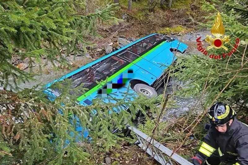Il mezzo, che stava trasportando studenti delle scuole medie diretti a Bormio, è uscito improvvisamente di strada in una curva: dopo un volo di alcuni metri, si è ribaltato su un fianco finendo nelle acque poco profonde del torrente. Un impatto violentissimo che, solo per un caso fortunato, non si è trasformato in tragedia.