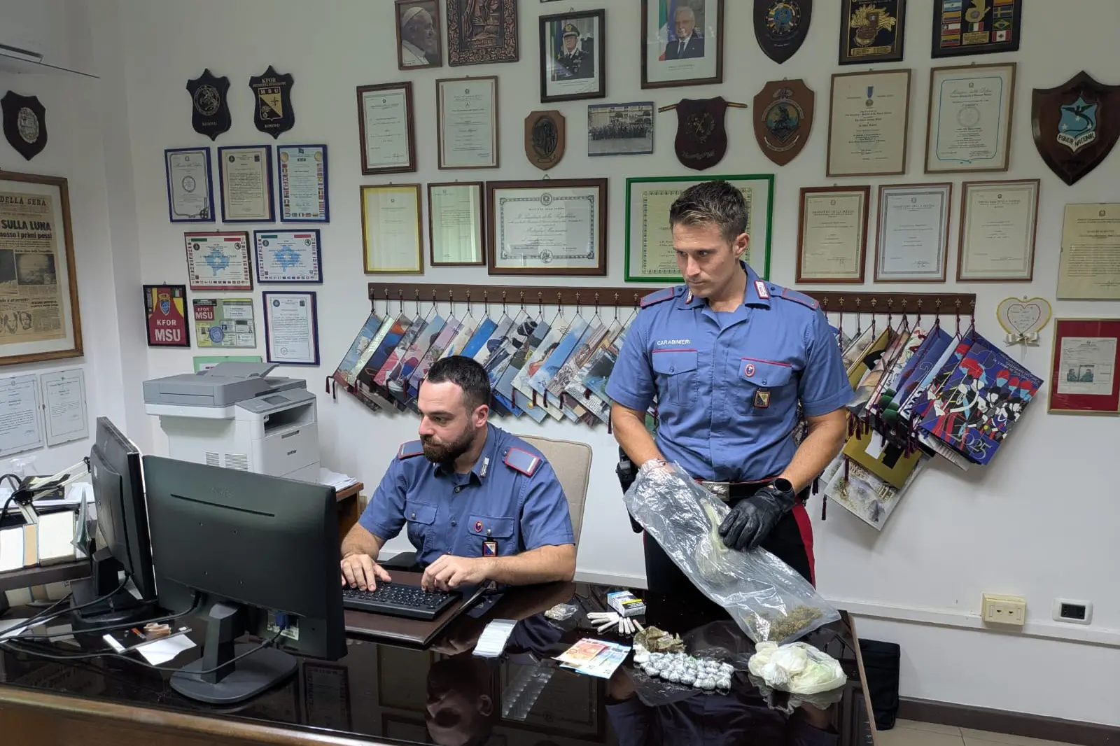 Nel corso del controllo e della successiva perquisizione personale e domiciliare, i militari hanno trovato 94 grammi di marijuana, 122 grammi di hashish, 50 euro in contanti, ritenuti provento dell’attività illecita, e vario materiale per il confezionamento delle dosi.