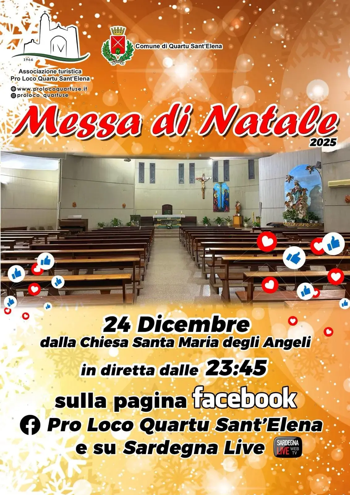 La Pro Loco di Quartu Sant’Elena curerà la trasmissione in diretta streaming della Messa di Natale, che sarà celebrata presso la Chiesa di Santa Maria degli Angeli, a Flumini di Quartu. La diretta sarà disponibile anche sul portale Sardegna Live, oltre che sulle pagine ufficiali della Pro Loco di Quartu Sant’Elena e sulla pagina Eventi a Quartu.