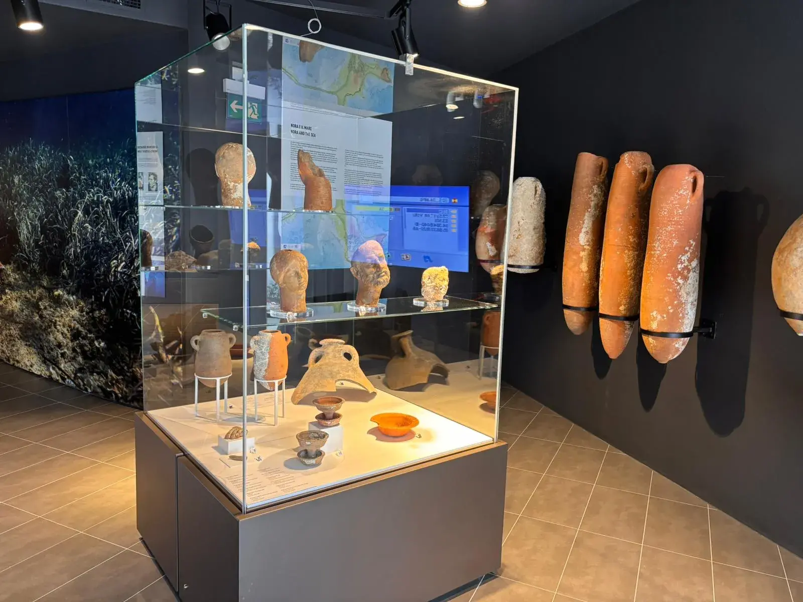 A descrivere i contenuti del nuovo allestimento è l’archeologa Chiara Pilo: “Gli spazi espositivi sono organizzati per aree tematiche, che raccontano le varie epoche di Nora e mostrano i luoghi pubblici della città, quelli di culto e la necropoli. Il nuovo museo non racconta solo Nora, ma parla di un intero territorio. Tra le attrazioni che potranno trovare esposte i visitatori possiamo annoverare le pitture murarie dell’edificio a est del Foro; il balsamario a forma di babbuino ritrovato nella necropoli fenicia; statuette votive rinvenute nell’ex area militare, e monili riaffiorati dalle tombe”.
