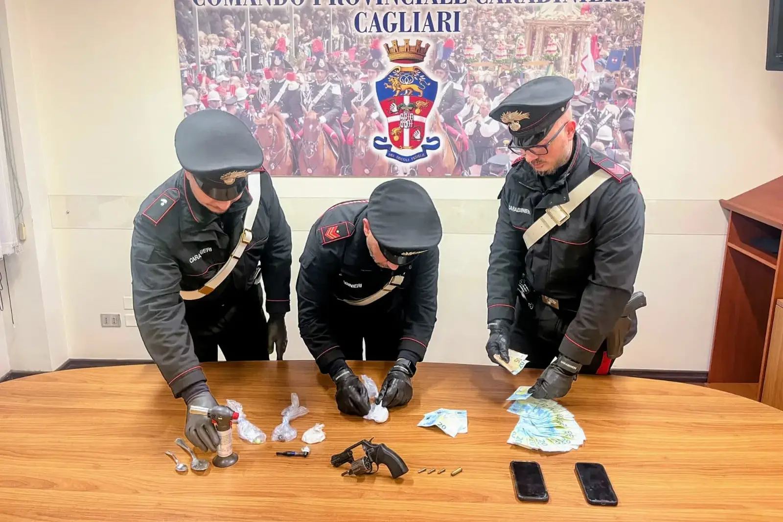 I militari hanno quindi esteso le perquisizioni alle abitazioni di residenza dei fermati. È proprio presso il domicilio del trentenne cagliaritano che è emerso l'elemento più allarmante: occultata nell'appartamento, i Carabinieri hanno trovato una rivoltella calibro 22 con matricola abrasa, carica con tre colpi inseriti nel tamburo e pronta all'uso.