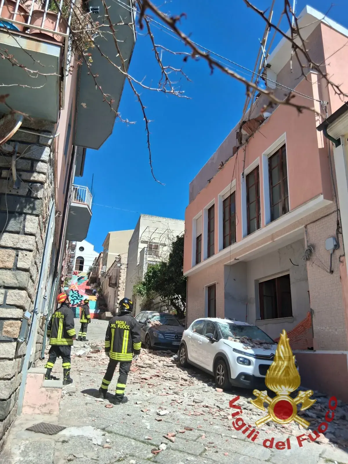 Intervento dei Vigili del fuoco intorno alle 12 in corso Garibaldi, nel pieno centro storico di Arzachena, a seguito del crollo di una parte degli intonaci e di alcuni elementi costruttivi di una palazzina in fase di ristrutturazione.