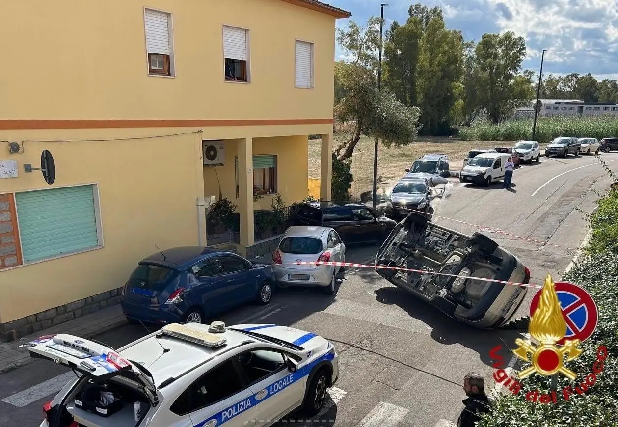 Incidente stradale durante il pomeriggio di oggi, mercoledì 1° ottobre, in via Ambalagi a Olbia, dove un'auto si è ribaltata dopo aver colpito violentemente due veicoli parcheggiati lungo la strada, e il cui conducente è rimasto ferito.