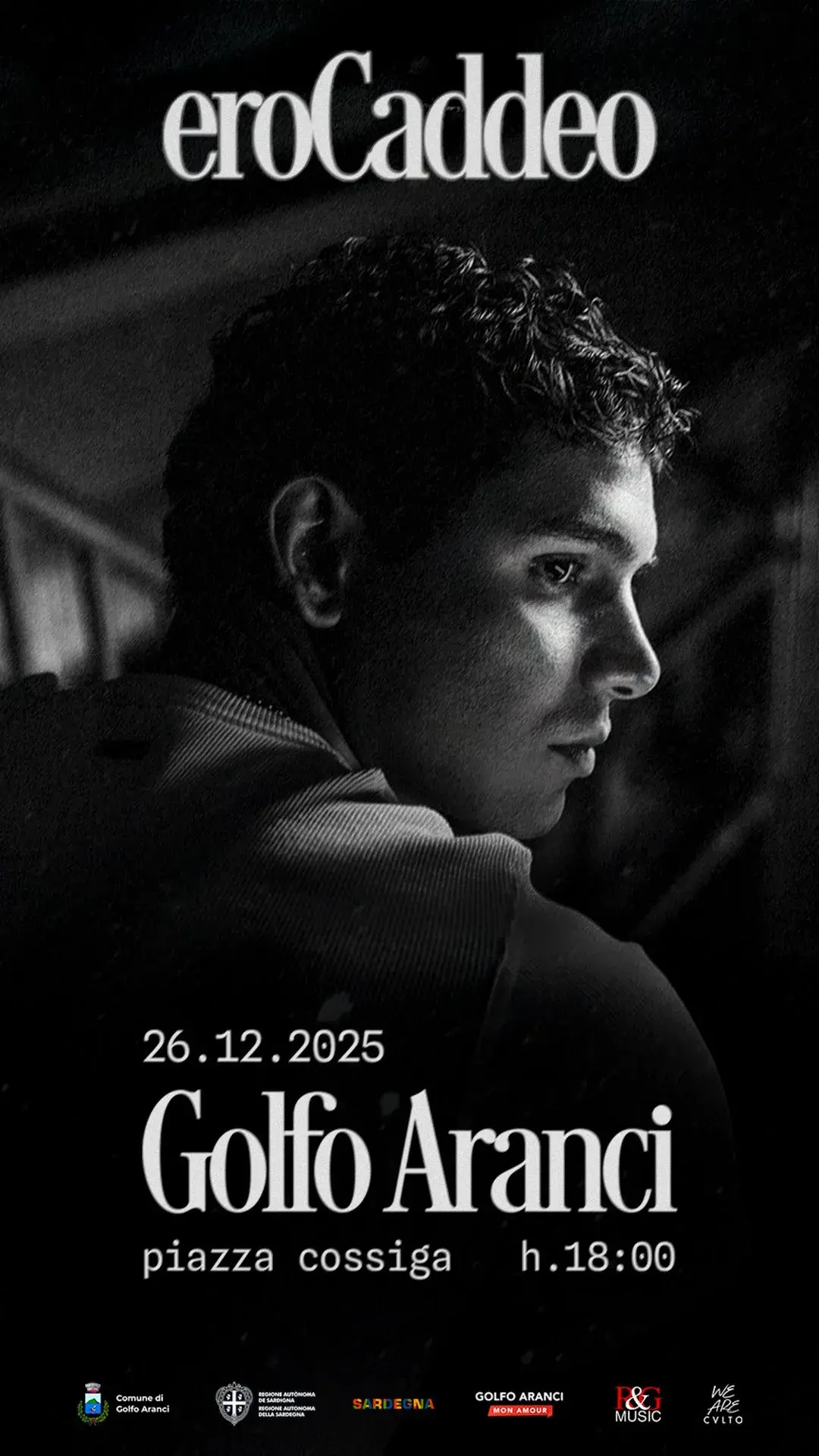 Dalla seconda posizione conquistata a XFactor, EroCaddeo ha scalato le vette della fama fino ad esibirsi davanti a folle sempre più grandi in Italia. Due concerti in Sardegna sono in programma per il 26 dicembre: uno a Golfo Aranci alle 18:30 presso la Tensostruttura in Piazza Cossiga e gli altri a Cagliari il 23 e a Carbonia il 27 dicembre.