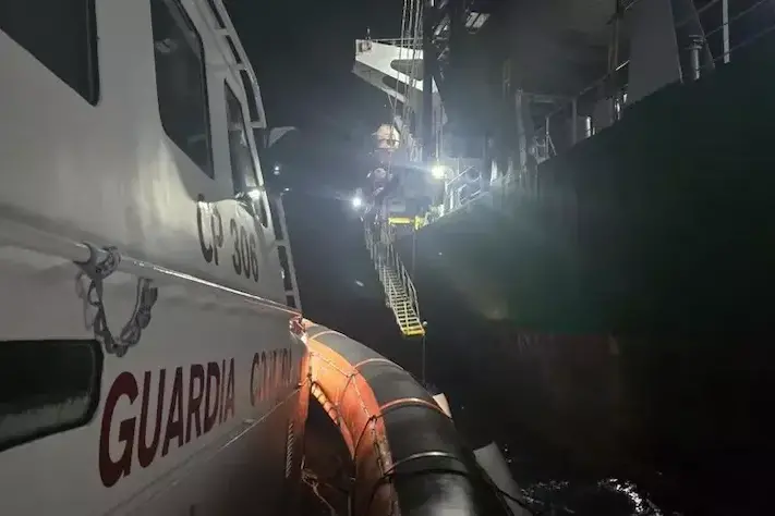 Intervento nella notte degli uomini della Guardia costiera di La Maddalena che hanno soccorso un marittimo imbarcato su una nave mercantile in transito nelle acque delle Bocche di Bonifacio.