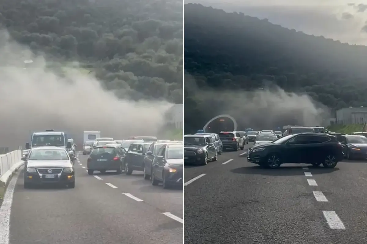 Momenti di forte tensione nella zona di Budoni, dove una densa nube di fumo ha invaso le corsie all'ingresso di una galleria, rendendo impossibile la normale circolazione. Secondo le prime informazioni, poi confermate dai Vigili del fuoco, l’origine dell’episodio è un’auto che ha preso fuoco all’interno del tunnel.