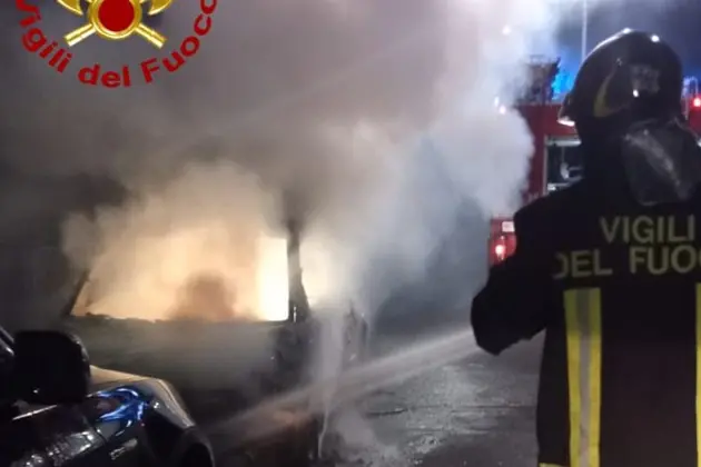 Intervento dei Vigili del Fuoco di Nuoro questa notte, intorno alle 2:20, in via Tridentina dove la squadra 1A del Comando Provinciale ha domato le fiamme che hanno completamente distrutto un'auto.