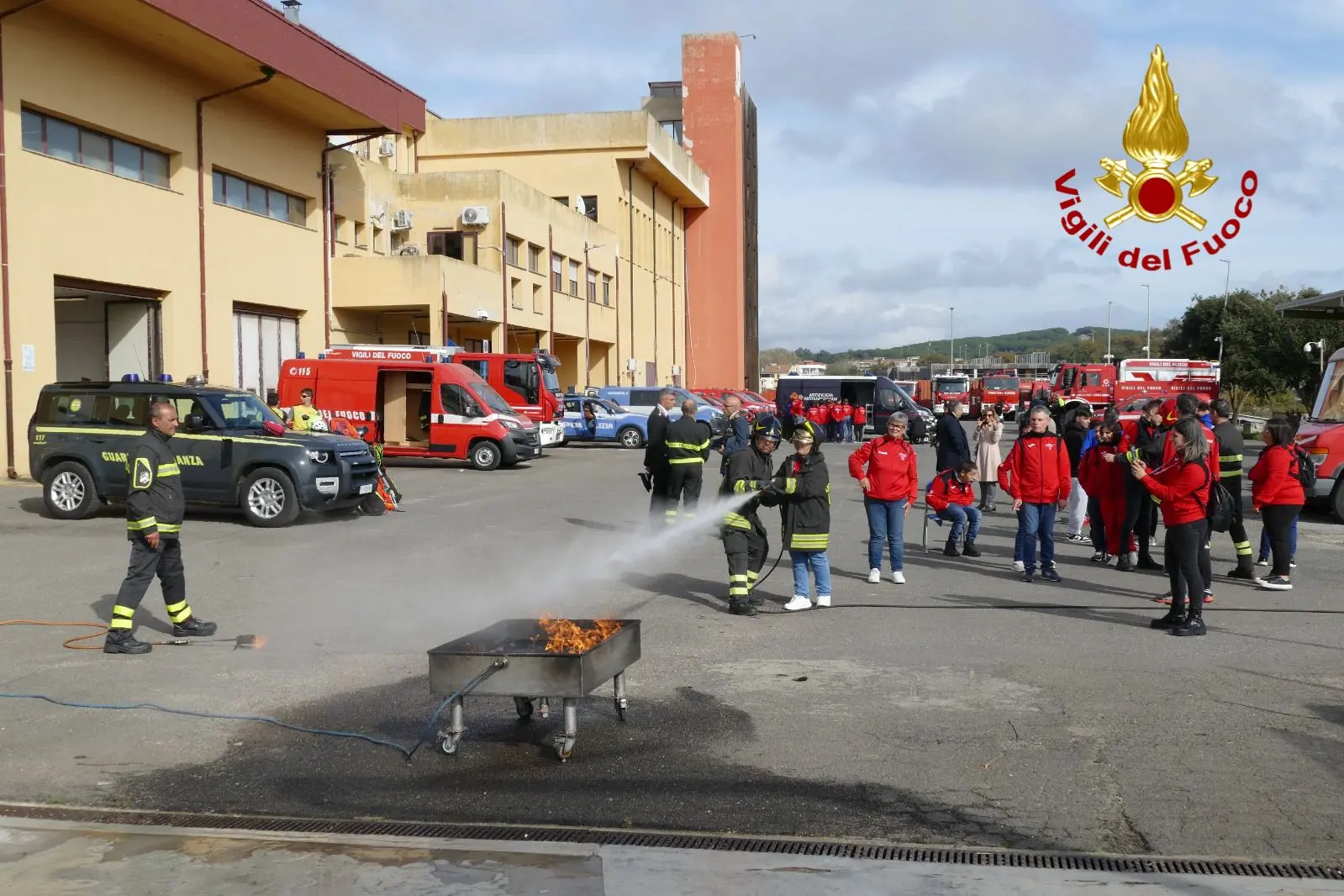 Uno dei momenti più coinvolgenti è stato la prova di spegnimento di un principio d’incendio controllato, che ha permesso ai ragazzi di mettersi alla prova in totale sicurezza guidati dai vigili del fuoco.