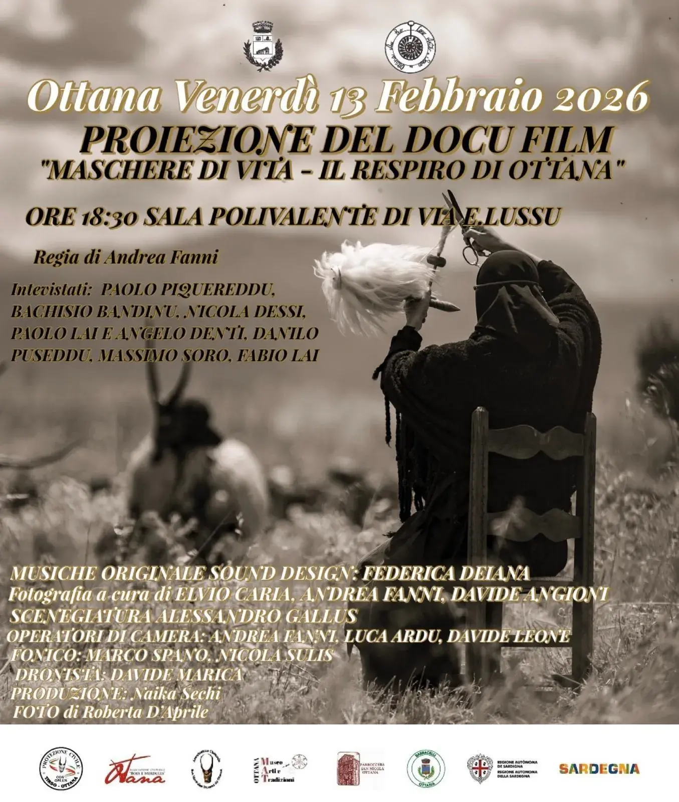 Il prossimo venerdì 13 febbraio, la Sala Polivalente di Vine Lussu ospiterà alle ore 18:30 la proiezione del docu-film “Maschere di Vita – Il Respiro di Ottana”, un emozionante viaggio tra le tradizioni, i volti e i racconti della comunità di Ottana, paese nel cuore della Sardegna immerso tra le colline e le pianure in cui la Macchia mediterranea sorge tra olivastri e lentischi.