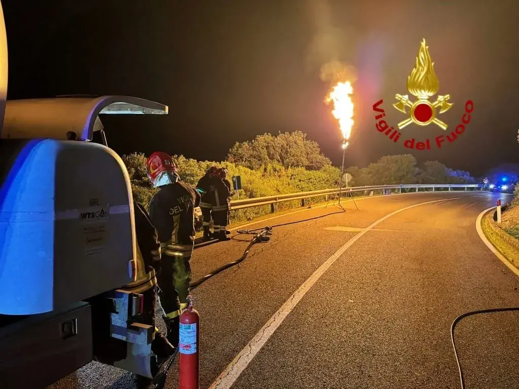 Il funzionario di guardia del Comando dei Vigili del Fuoco di Nuoro sta coordinando le operazioni di soccorso sul luogo dell'incidente. Attualmente, sono in corso complesse operazioni per svuotare completamente la cisterna del GPL attraverso l'accensione delle "torce".