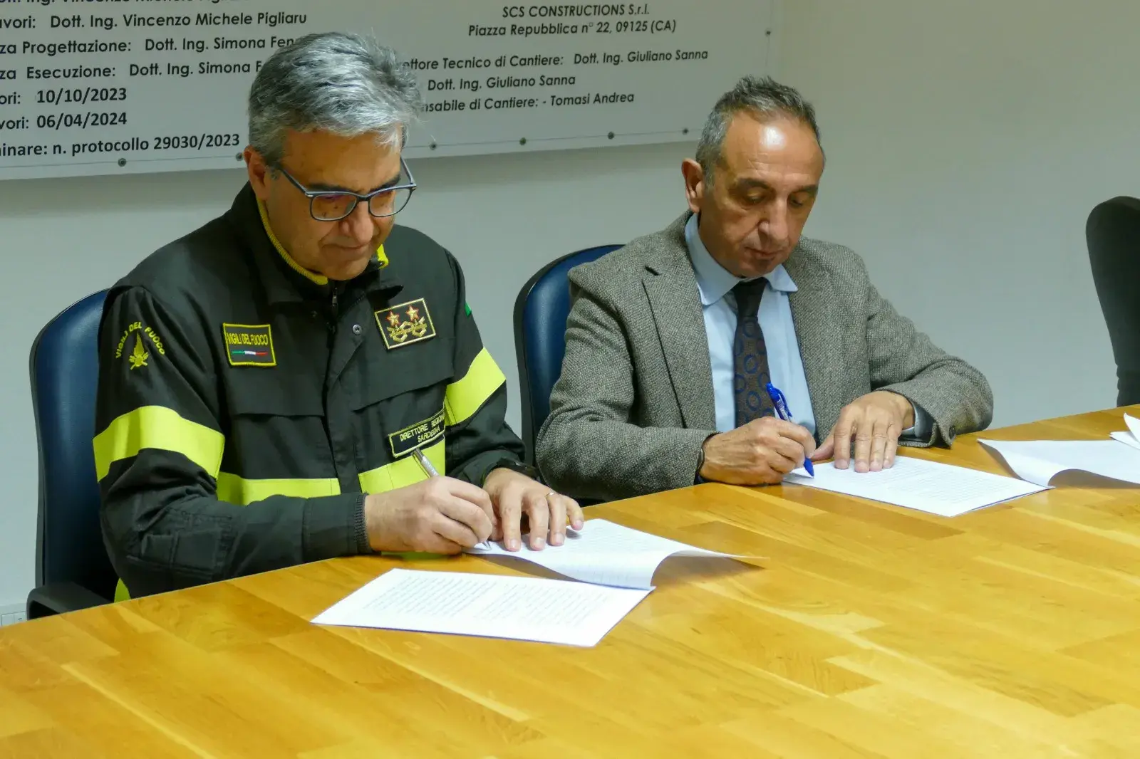 Alla firma erano presenti il Direttore Generale di AREUS, Angelo Maria Serusi, e il Direttore Regionale dei Vigili del Fuoco, Nicola Micele.