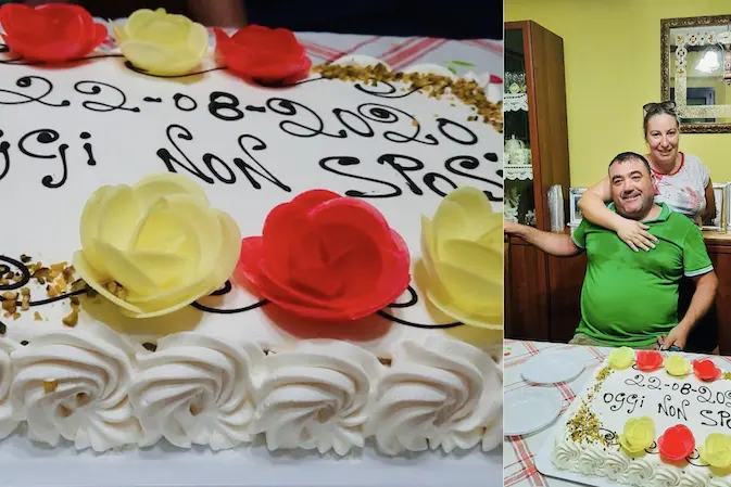 Questo non ha impedito ai “rinviati” marito e moglie di onorare la data scelta per prima con pranzo in famiglia è una torta dal significato di tutto rispetto e con una scritta davvero speciale: ‘’Stefano e Milena, oggi non sposi’. Alla faccia del virus!