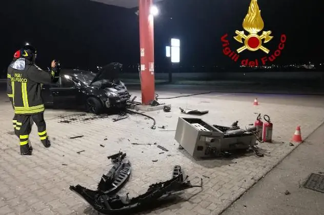 Un giovane alla guida della sua Golf, alle 6:50 di questa mattina, è entrato, forse ad alta velocità, nel piazzale di una stazione di servizio lungo la strada statale 131.