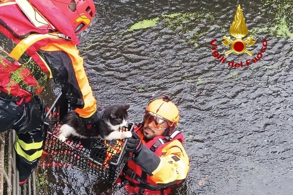 Una storia a lieto fine che ha tenuto con il fiato sospeso una famiglia di Abbasanta. Un gatto, rimasto bloccato in uno scantinato invaso da oltre un metro e mezzo d’acqua, è stato salvato dai Vigili del fuoco.