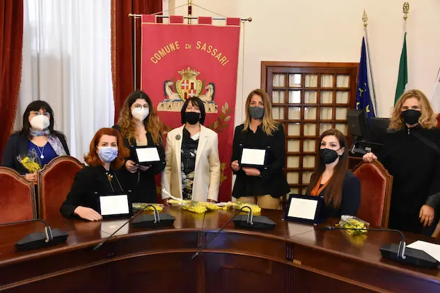 Cinque donne, cinque figure che con il loro carisma, le loro competenze e la loro storia, hanno dato lustro a Sassari a livello nazionale e internazionale. A Francesca Sassu, Elisabetta Delogu, Liliana Cano, Franca Bergamini e Simonetta Sotgiu l’Amministrazione comunale ha voluto dedicare cinque targhe per ringraziarle di quanto hanno fatto per la città. La cerimonia si è tenuta oggi, 8 marzo, Giornata internazionale della Donna, nella sala del Consiglio di Palazzo Ducale. A fare gli onori di casa il presidente Maurilio Murru, il sindaco Nanni Campus, insieme a una rappresentanza della Giunta, dell’Assemblea civica e della commissione comunale delle Pari Opportunità.