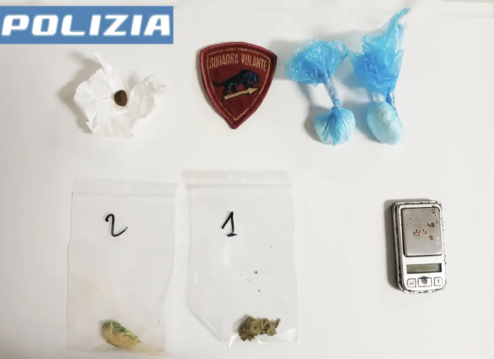 Fermato in via Paganini durante una pattuglia delle Volanti, l’uomo non ha saputo giustificare la sua presenza in zona e si trovava senza documenti. La perquisizione personale ha portato al rinvenimento di circa 20 grammi di cocaina e dosi di marijuana nascoste negli indumenti. Successivamente, nella sua abitazione, la Polizia ha scoperto ulteriori sostanze stupefacenti e un bilancino di precisione.
