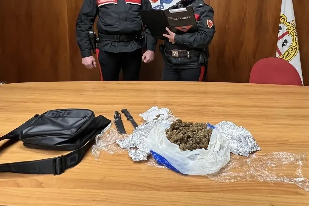 I militari, impegnati nei consueti servizi di controllo del territorio, hanno notato il ragazzo presso l’autostazione degli autobus di via Padre Zirano, il quale alla loro vista mostrava segni di forte agitazione. In seguito a una perquisizione personale, all’interno del suo marsupio sono stati trovati 135 grammi di marijuana, già suddivisa in due involucri, e un pugnale lungo 22,5 centimetri, di cui 12 di lama.