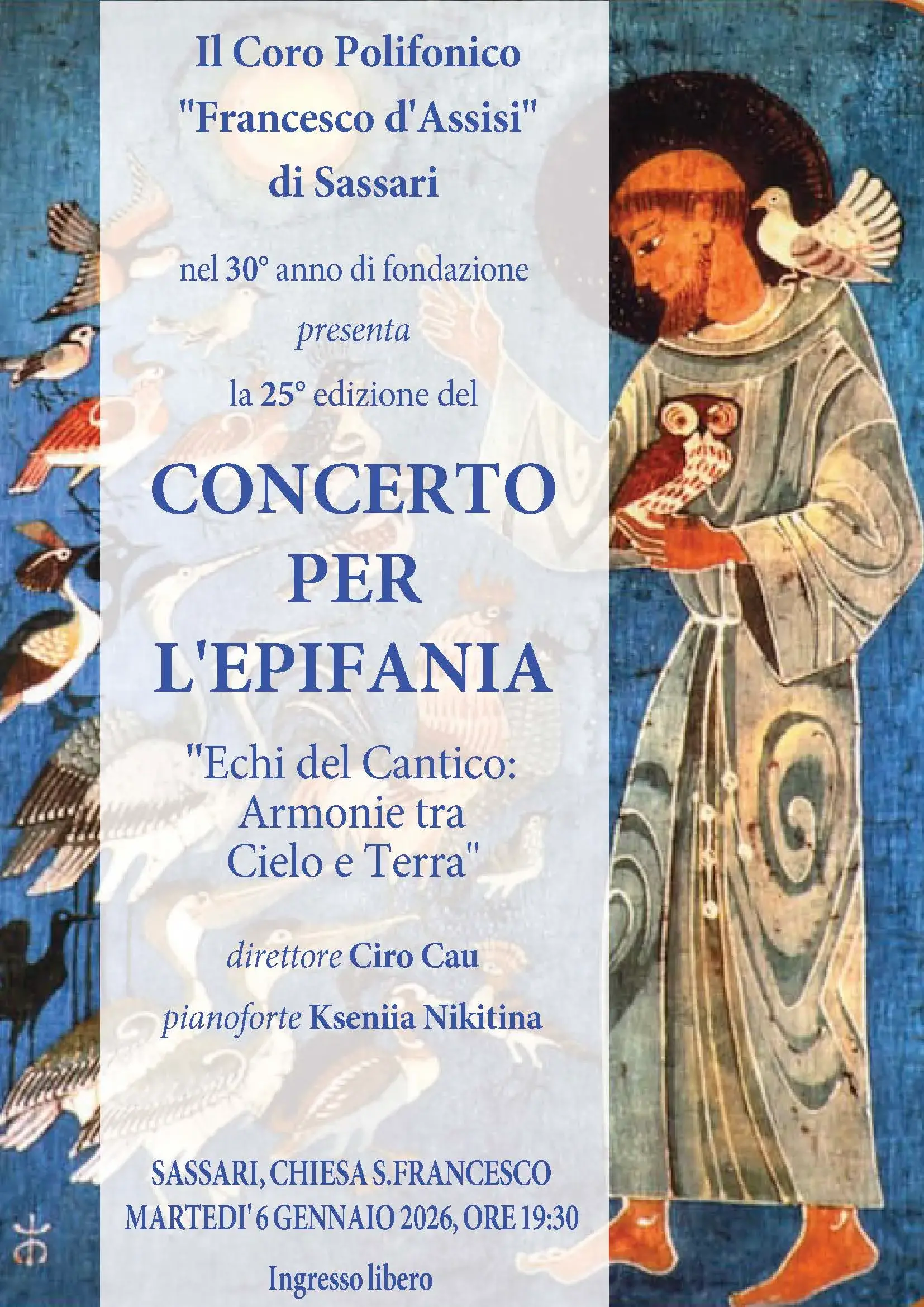 Il Coro Polifonico "Francesco d’Assisi" si prepara a celebrare un traguardo significativo che unisce musica, fede e identità cittadina: si tratta della XXV Edizione del Concerto dell’Epifania, evento ormai storico per la città di Sassari, che si terrà domani, martedì 6 gennaio, alle ore 19:30, presso la suggestiva Chiesa di San Francesco (Piazzale Cappuccini).