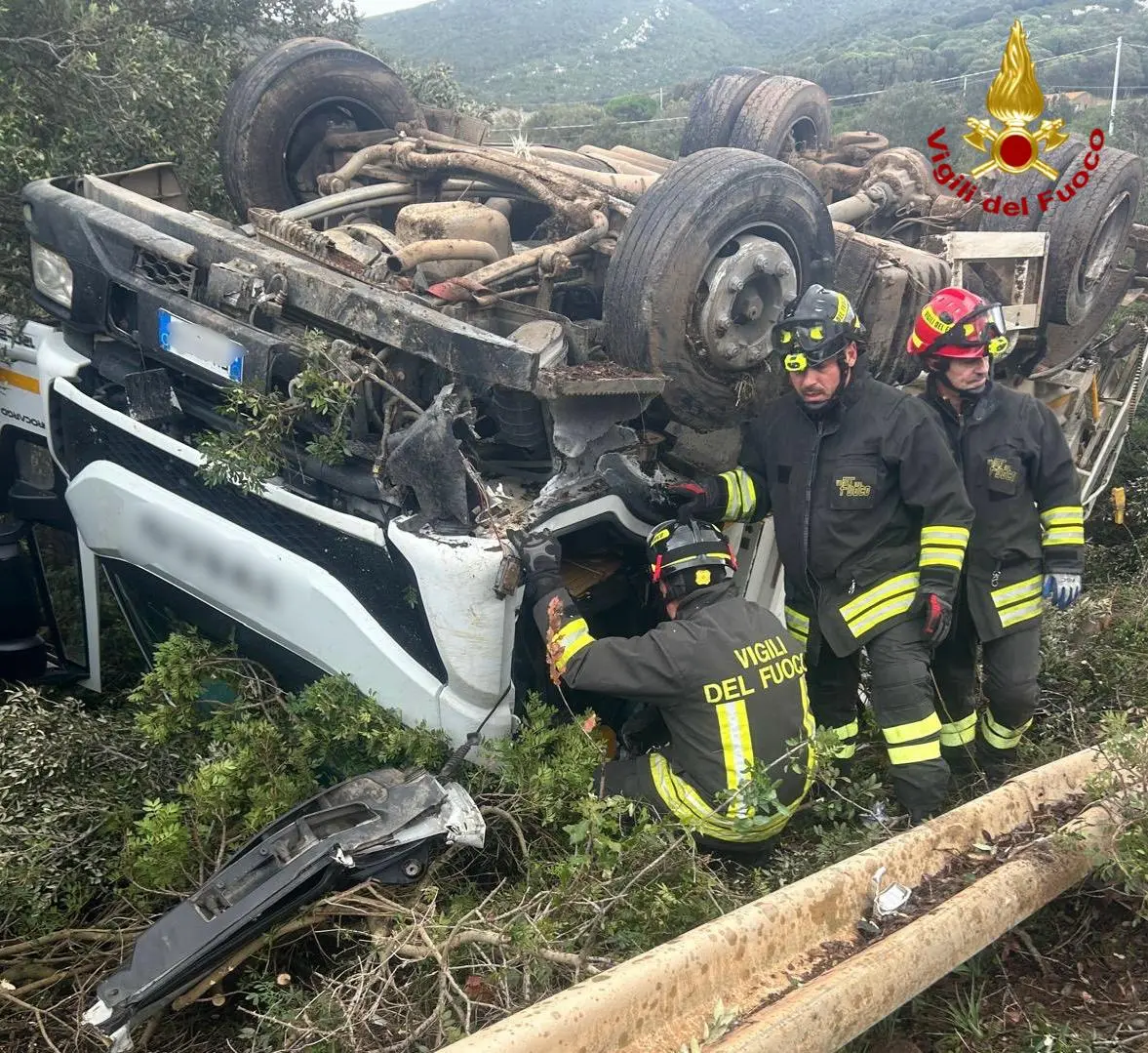 La squadra dei Vigili del Fuoco del distaccamento di Porto Torres è intervenuta nel pomeriggio di oggi, giovedì 4 dicembre, per un incidente stradale sulla SP 93 in direzione La Corte, che ha coinvolto un camion della raccolta dei rifiuti urbani che si è ribaltato dopo essere uscito di strada per circa 100 metri, finendo giù in una scarpata tra un muretto e degli alberi.