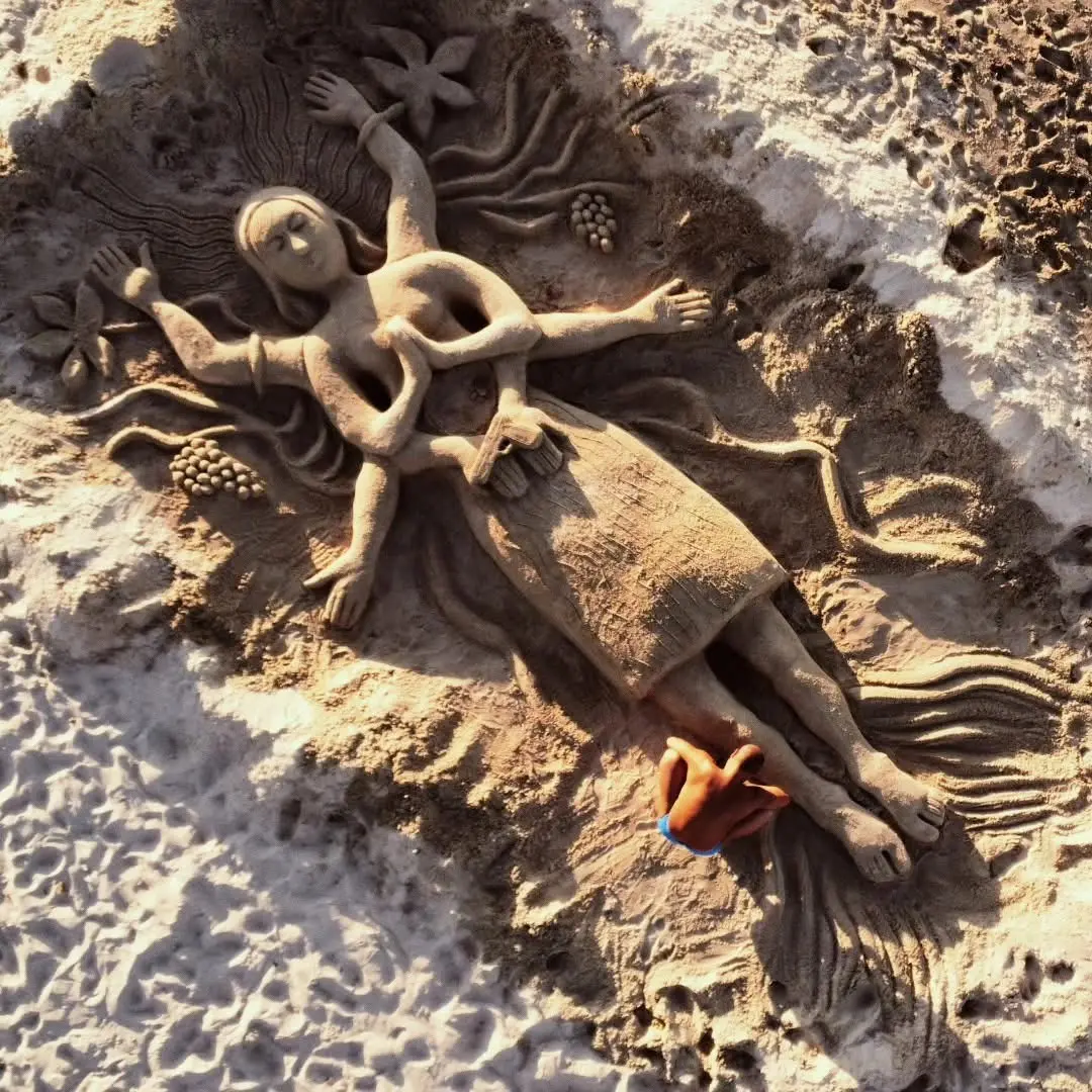 Si tratta di un altorilievo, realizzato dall'artista sardo Nicola Urru, sulla spiaggia di Platamona in Sardegna, in memoria di Cinzia Pinna, la trentatreenne di Castelsardo uccisa lo scorso 11 settembre all'interno di un casolare nella tenuta Concaentosa tra Palau e Arzachena.