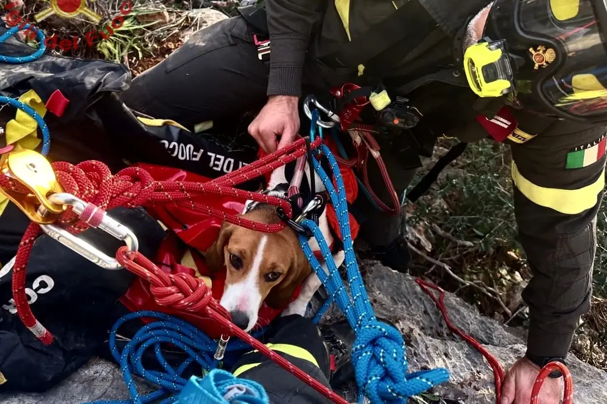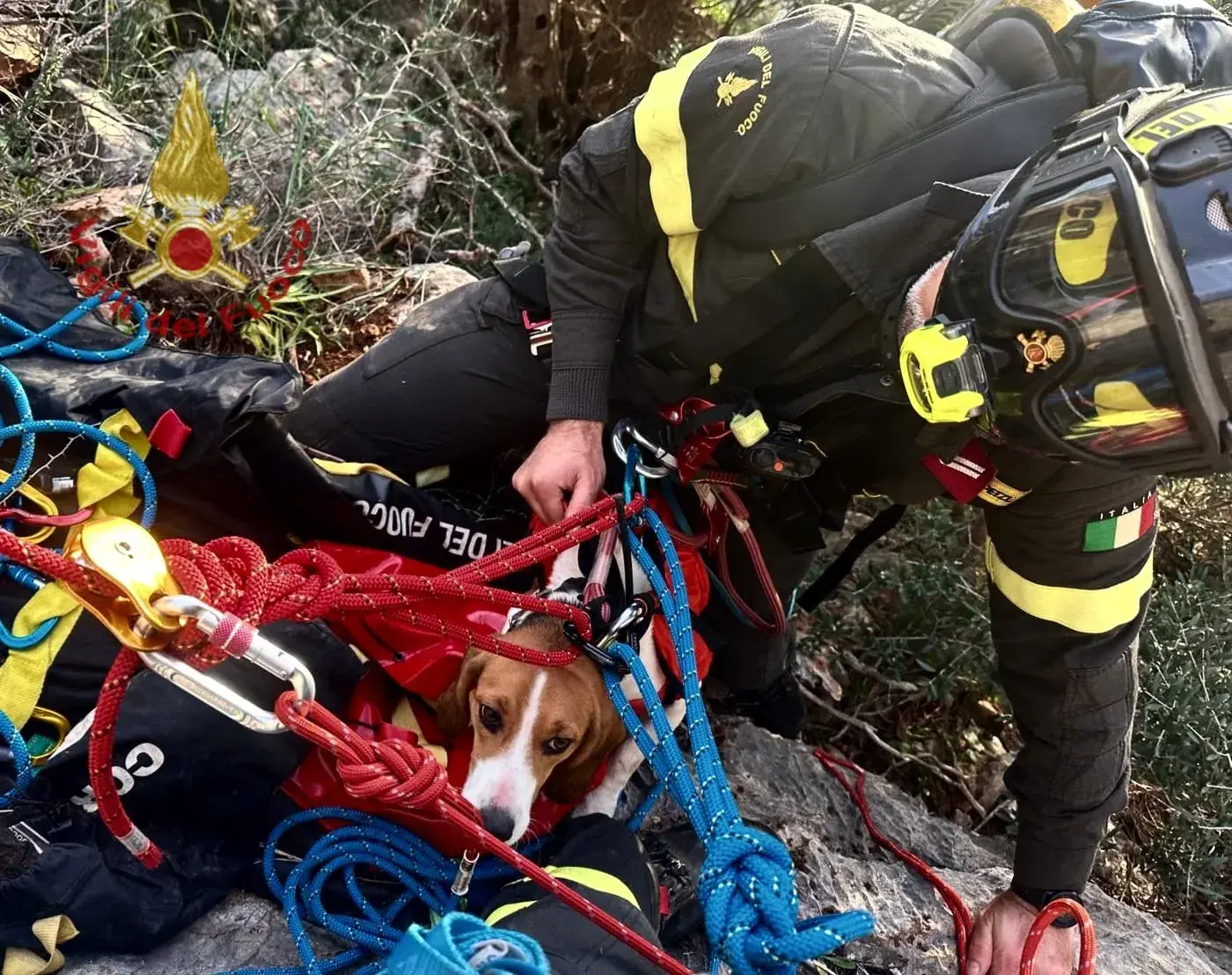 Il cane si era separato dal suo proprietario mentre inseguiva un gregge di capre sulla cima della parete e non riusciva più a scendere. Dopo che il padrone ha lanciato l'allarme, la sala operativa dei Vigili del Fuoco ha inviato sul posto la squadra di pronto intervento composta dagli specialisti SAF (speleo alpino fluviali) del Comando di Cagliari.