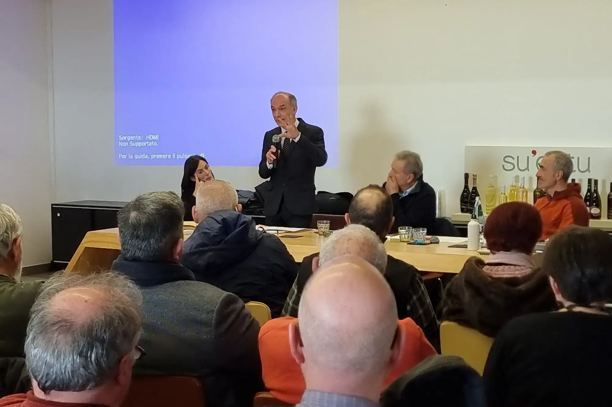 Un confronto senza mezzi termini e aperto si è tenuto oggi, sabato 21 febbraio, a Sanluri, presso le Cantine Su Entu, nell'ambito dell'iniziativa "Energia in Sardegna. Chi decide? Noi o Roma?". Partecipanti all'evento sono stati l'assessore agli Enti Locali e all'Urbanistica, Francesco Spanedda, insieme ai comitati contrari alla speculazione energetica, ai consiglieri regionali del territorio - Luca Pizzuto, Paola Casula, Emanuele Matta e Gianluigi Piano -, ai sindaci e alle associazioni ambientaliste.