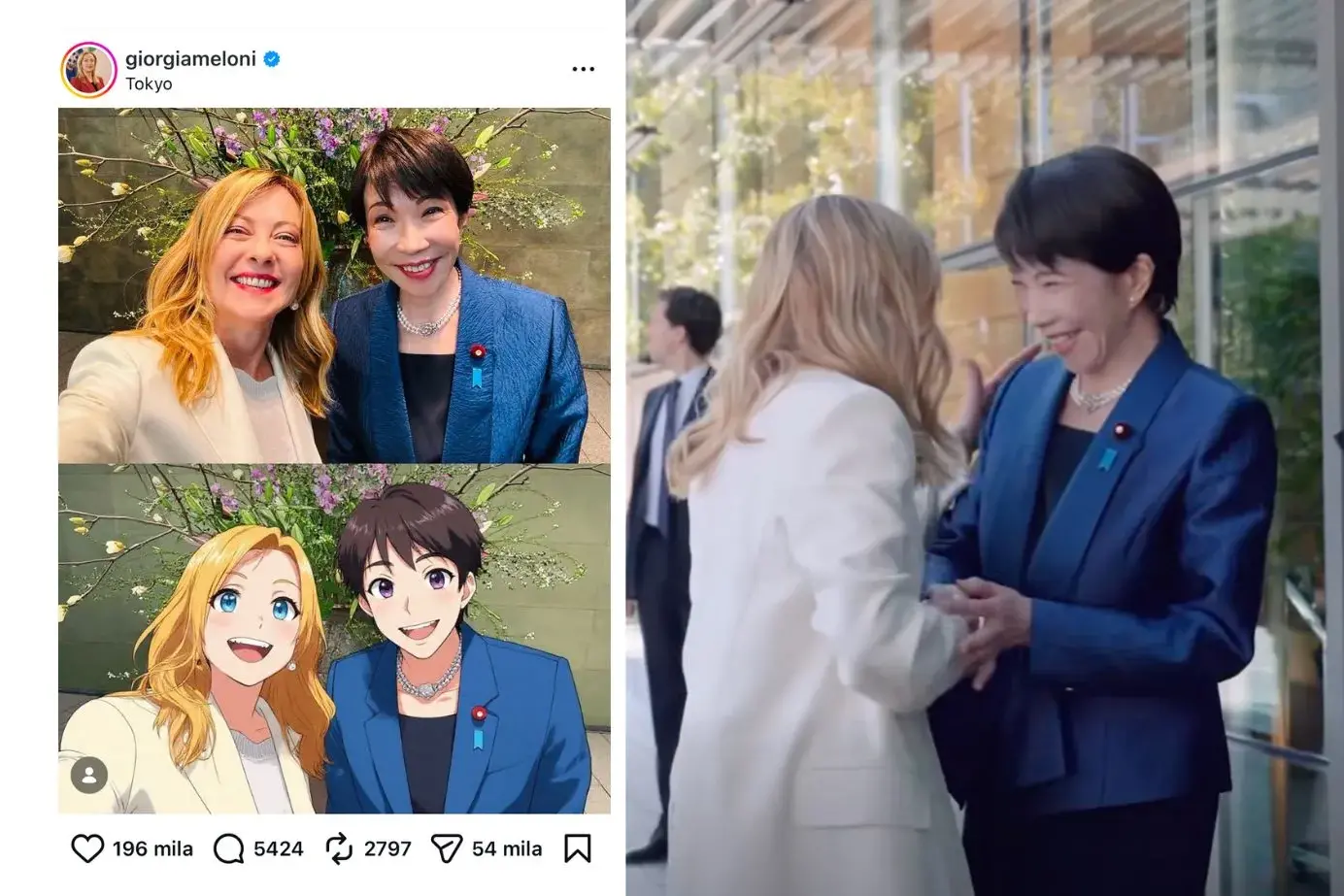 “Due Nazioni lontane, ma sempre più vicine. Amicizia e sintonia con Sanae Takaichi”, primo Ministro del Giappone. A scriverlo sui social è stata il presidente del Consiglio Giorgia Meloni al termine del pranzo offerto dalla sua omologa giapponese, postando un selfie di loro due montato assieme alla versione 'anime'.